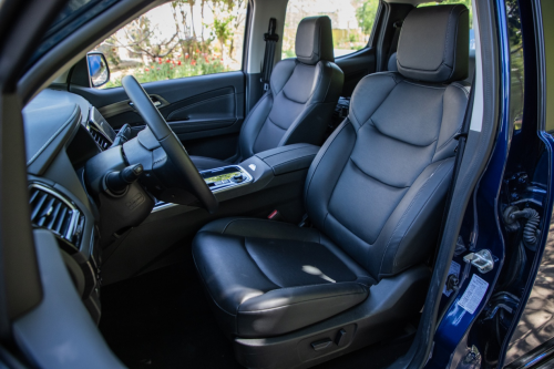 进入到铃拓汽油版的车内,不难发现新车不仅是更换的了动力总成那么简单,相应的舒适花升级也做了配套,乘用化的智能座舱甚至有一种家用SUV的既视感,双色中控台搭配带有木制纹路的饰板,大面积的钢琴烤漆显得十分精致。在配置方面,多功能方向盘、电子手刹、电子挡把、自动驻车这些配置均有配备。前排乘客也暖心的配备了电动加热座椅,这项配置是对漫长冬季最基本的尊重,符合人体工程学的皮质座椅也带来了更加舒适的乘坐体验。