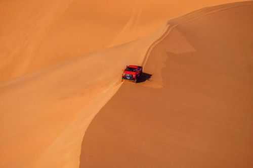 挑战必鲁图峰不仅要拥有高超沙漠越野技术,以及丰富挑战经验,还要有火炮给予的强劲动力,极致的越野性能,以及首屈一指的安全性。