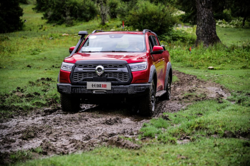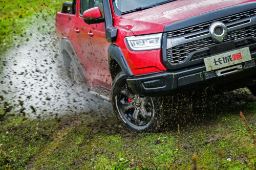 有“劲”还不够,把“劲”用到位,才能事半功倍。越野炮搭载了分时四驱系统+前后桥电控式差速锁。在四驱模式下,车辆的越野性能充分激发,可以轻松翻越路上的坑洼、沙地、泥淖。如果一侧车轮出现打滑,通过差速锁将其锁止,就能将动力传递到另一侧车轮,让车辆拥有足够的驱动力脱困。