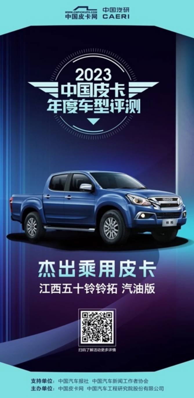 据悉,2023中国皮卡年度车型测评涵盖车辆操控安全、整车效率、驾乘舒适等20余项细分专项测试,各测试项目、权重根据用户真实使用场景、需求及关注等进行针对性调整,尽可能表现皮卡产品的实际应用能力。基于评测的客观性和公正性,历时近1个月的专业评审,最终江西五十铃铃拓汽油版获得了杰出皮卡奖。