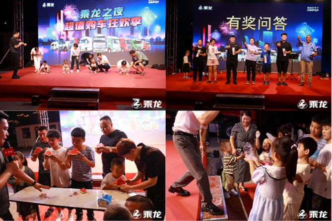 在乘龙的精心安排下,各项活动缤纷呈现,大人孩子齐上阵,一同开展叠叠乐、有奖问答、吃西瓜比赛、泡泡秀等一系列趣味活动,全场水枪大战更是将活动推向高潮,整场活动欢声笑不断。卡友们以车会友,畅谈货运生活中的酸甜苦辣,分享自己的创业致富心得,在繁忙工作的闲暇之余,乘龙为用户开辟了一个避暑放松、家庭欢聚之地。