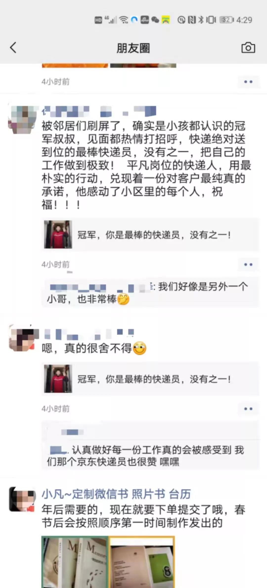 北京日报客户端《回龙观“冠军”快递员离职返乡,社区群里却炸开了锅……》报道发出后,让京东快递员王冠军的温暖故事为更多人所熟知,不少居民都很受触动,纷纷表达了不舍和挽留之情。王冠军告诉记者,这次回家是有一些个人的事要处理,相处了5年的同事和居民像亲人一样,等把家里安顿妥当,还会再回北京继续工作。