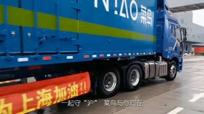 近日不断有网友在上海抗疫队伍中,发现菜鸟自营物流车队的身影。