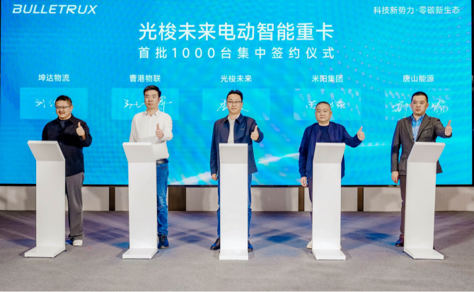 现场,光梭未来电动智能重卡首批1000台集中签约暨首台1.0纯电重卡交付仪式同步举行,标志着这家新能源重卡行业的“新势力”,正加速推动行业共赴绿色、智能、全球化的未来!