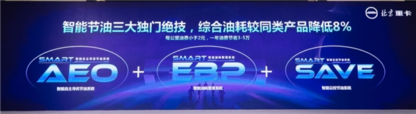 四大Smart数智技术与全新一代X数智动力链加持 树立智能节油与智能安全新标杆——北京重卡顺应“以软件定义重卡”的数智科技潮流,结合海量数据连接和智能算法赋能推出了“i-Beijing”数智重卡。依托“数智”技术,北京重卡创新打造Smart AEO、Smart SAVE和Smart EBP三大智能节油管理系统,构建了北京重卡智能节油体系,相比同类产品油耗可降低8%。