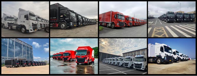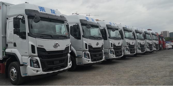 8月29日,乘龙H5大单桥于广西南宁批量交付。这批车辆由广西一家物流企业采购,将用于广东邮政速递第三方承运业务。